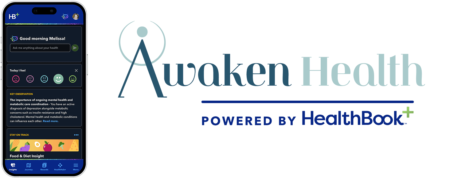Awaken Health has partnered with HealthBook+ to give you a more connected, personalized care experience—making it easier to manage and improve your health.